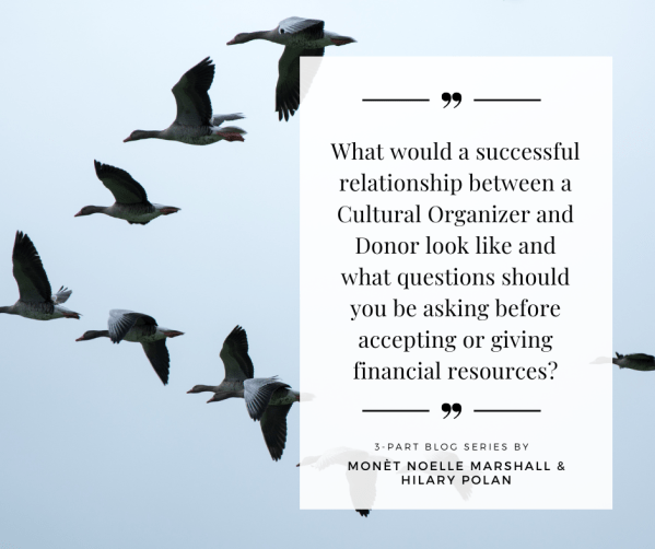 This is a 3-part series on stewarding a giving relationship between donors and cultural organizers. This blog series is co-created by myself and the brilliant cultural organizer Monét Noelle Marshall.